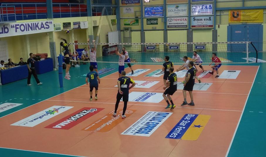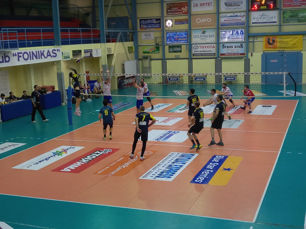 Οι τυπικά γηπεδούχοι (Α.Ο. Μυτιλήνης) ξεκίνησαν με πολύ όρεξη το παιχνίδι και κατάφεραν να πάρουν διαφορά τριών πόντων (4-1), όμως στη συνέχεια οι Συριανοί αντέδρασαν και με τον Δ. Μαραγκό ισοφάρισαν σε 4-4. Ο Μελάς πήρε το μπλοκ άουτ και οι Συριανοί πέρασαν για πρώτη φορά μπροστά στο σκορ (4-5) διευρύνοντας μάλιστα το σερί τους στο 4-0. Ο Τριχώνας με άσσο έκανε το 10-9 για την ομάδα της Μυτιλήνης η οποία δείχνει στο κομμάτι αυτό αρκετά καλά στοιχεία. Ο Α.Σ. Σύρου με τον Νομικό στη γραμμή του σερβίς έχει σερί 0-4 και το σκορ έχει μετατραπεί σε 10-13. Στο +6 για την ομάδα έφτασε η διαφορά για την Σύρο, έπειτα και τον πόντο από τον Μελά (14-20). Οι Συριανοί ξεκίνησαν μετά το πρώτο… μισό του σετ να πατούν σταδιακά… γκάζι και να αυξάνουν τη διαφορά φτάνοντας μέχρι και το +6. Ο Α. Ρούσσος σαν σε… προπόνηση έκανε το 16-23 έπειτα το καλό σερβίς του Δούναβη. Ο Βελέντζας πέρασε έξυπνα την μπάλα, οι τυπικά γηπεδούχοι δεν έβγαλαν άμυνα και το σκορ έγινε 16-25 και το 0-1 στα σετ.