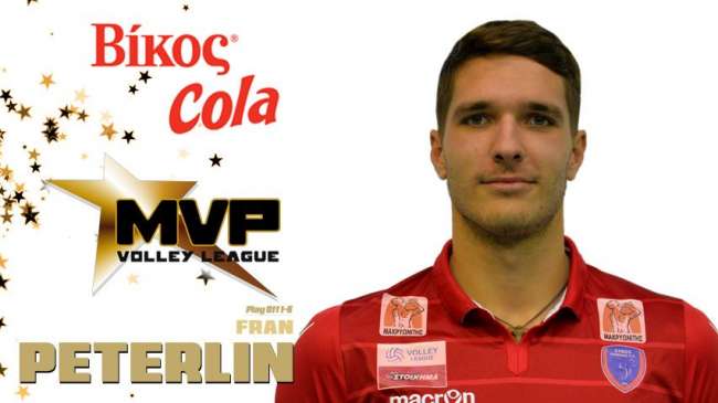 O Κροάτης ακραίος του ΑΟ Φοίνικα Σύρου Φραν Πέτερλιν αναδείχτηκε πολυτιμότερος αθλητής MVP Βίκος Cola της Α΄φάσης των πλέι οφ (1-8) για το πρωτάθλημα Volley League «Πάμε Στοίχημα» 2017-18.