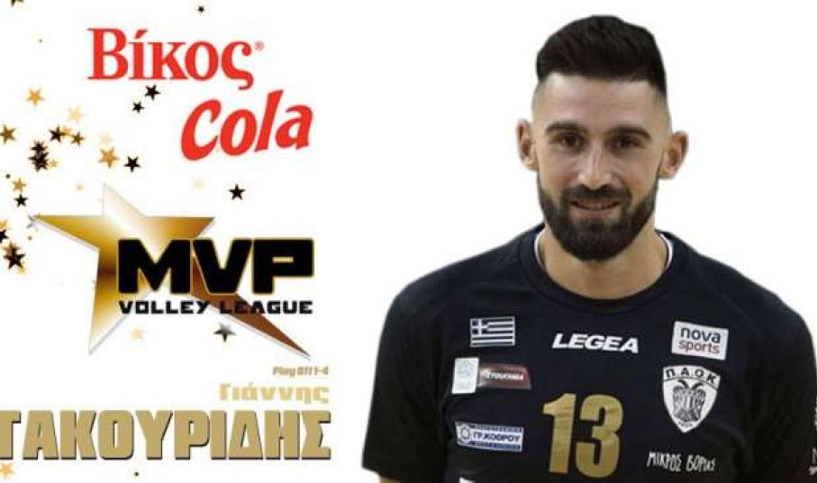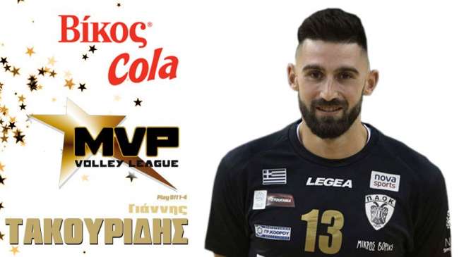 Από εκεί και πέρα ο διεθνής κεντρικός του ΠΑΟΚ και πρώην παίκτης του Φοίνικα Σύρου Γιάννης Τακουρίδης αναδείχτηκε πολυτιμότερος αθλητής MVP Βίκος Cola της ημιτελικής φάσης των πλέι οφ (1-4) για το πρωτάθλημα Volley League «Πάμε Στοίχημα» 2017-18.
