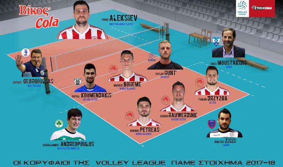 Η ΕΣΑΠ ανακοίνωσε την κορυφαία ομάδα του πρωταθλήματος Volley League Πάμε Στοίχημα 2017-18. Για την ανάδειξη της κορυφαίας επτάδας 2017-18, του κορυφαίου αθλητή Κ20 ετών και του προπονητή «που δεν θα ήθελαν να είχαν αντίπαλο» ψήφισαν οι προπονητές των 12 ομάδων.
