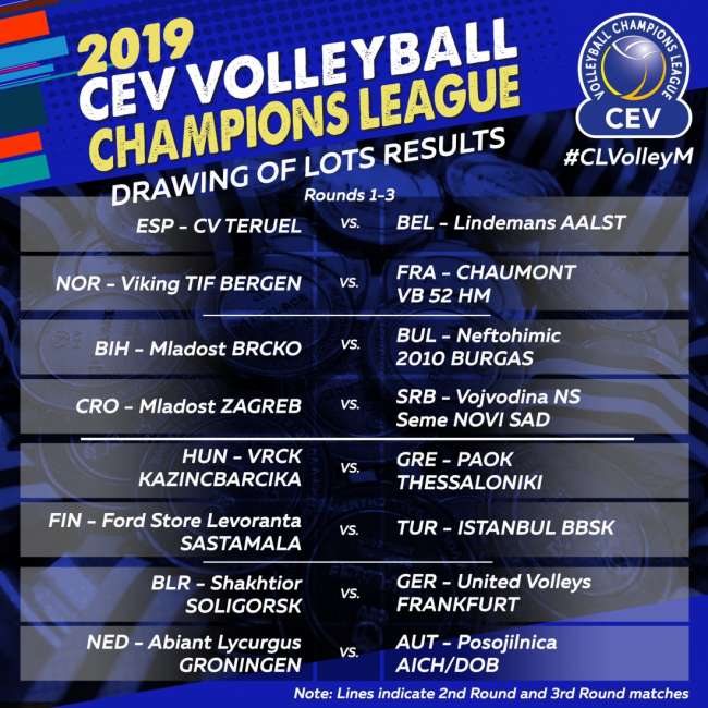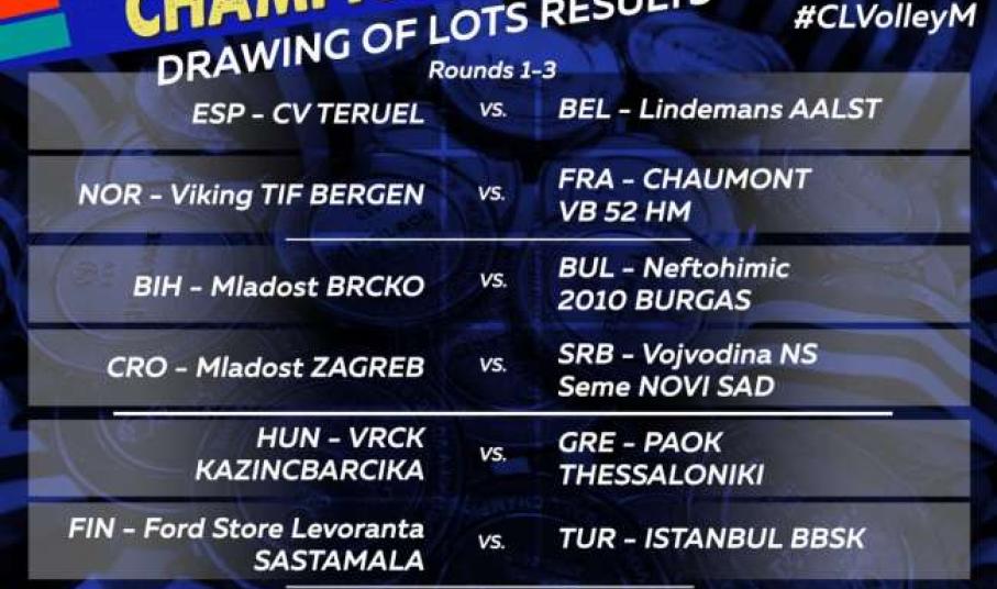 Συγκεκριμένα ο Ολυμπιακός θα αντιμετωπίσει στον Β΄ γύρο του CEV Cup τον ηττημένο του ζευγαριού Σολιγκόρσκ (Λευκορωσίας) - Γιουνάιτεντ Βόλεϊ Φρανκφούρτης (Γερμανία).