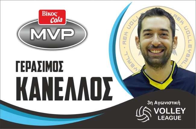 O κεντρικός της Α.Ε.Κ. Μάκης Κανέλλος αναδείχτηκε πολυτιμότερος αθλητής MVP Βίκος Cola της 3ης αγωνιστικής του πρωταθλήματος Volley League 2018-19.