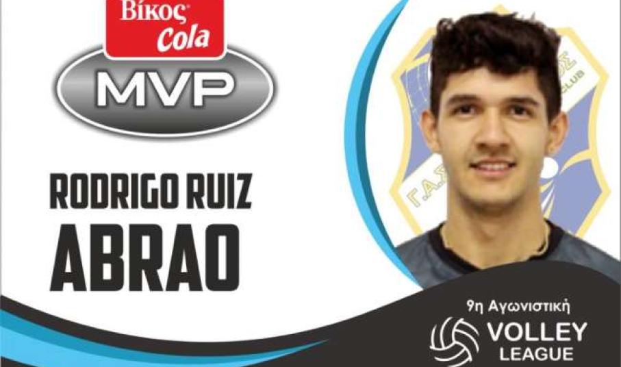 O Βραζιλιάνος ακραίος του Γ.Α.Σ.Παμβοχαϊκός Ροντρίγκο Αμπράο Ρουίζ Ντανιέλ αναδείχτηκε πολυτιμότερος αθλητής MVP Βίκος Cola της 9ης αγωνιστικής του πρωταθλήματος Volley League 2018-19.