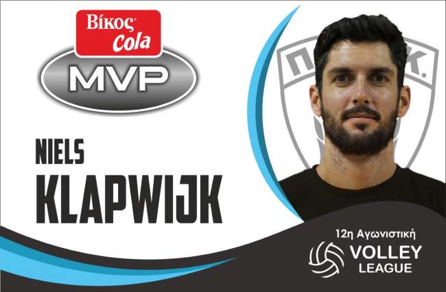 O νεοαποκτηθέντας διαγώνιος του ΠΑΟΚ Νιλς Κλαπβάικ αναδείχτηκε πολυτιμότερος αθλητής MVP Βίκος Cola της 12ης αγωνιστικής του πρωταθλήματος Volley League 2018-19.