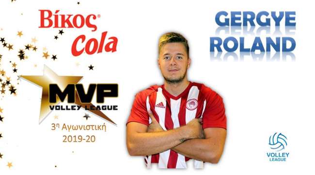 Ο Oύγγρος ακραίος του Ολυμπιακού Σ.Φ.Π. Ρόλαντ Γκέργκι αναδείχτηκε MVP Βίκος Cola της 3ης αγωνιστικής του πρωταθλήματος Volley League 2019-20.