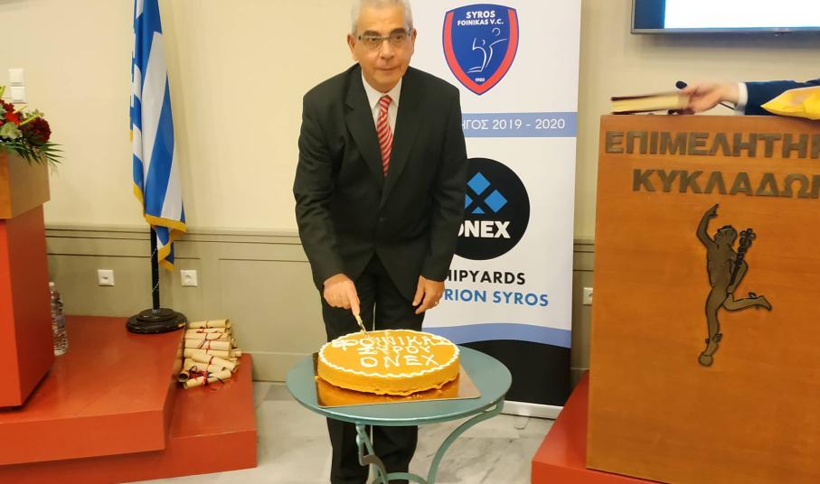 Μέσα σε κλίμα αισιοδοξίας και ενθουσιασμού πραγματοποιήθηκε η εορταστική εκδήλωση του Φοίνικα Σύρου – ONEX. Στην εκδήλωση έδωσαν το παρών οι τοπικοί άρχοντες του νησιού, ο πρόεδρος της ONEX Νεώριον Σύρου κ. Πάνος Ξενοκώστας, οι φίλοι της ομάδας, αλλά και το τεχνικό τιμ μαζί με τους αθλητές των τμημάτων.