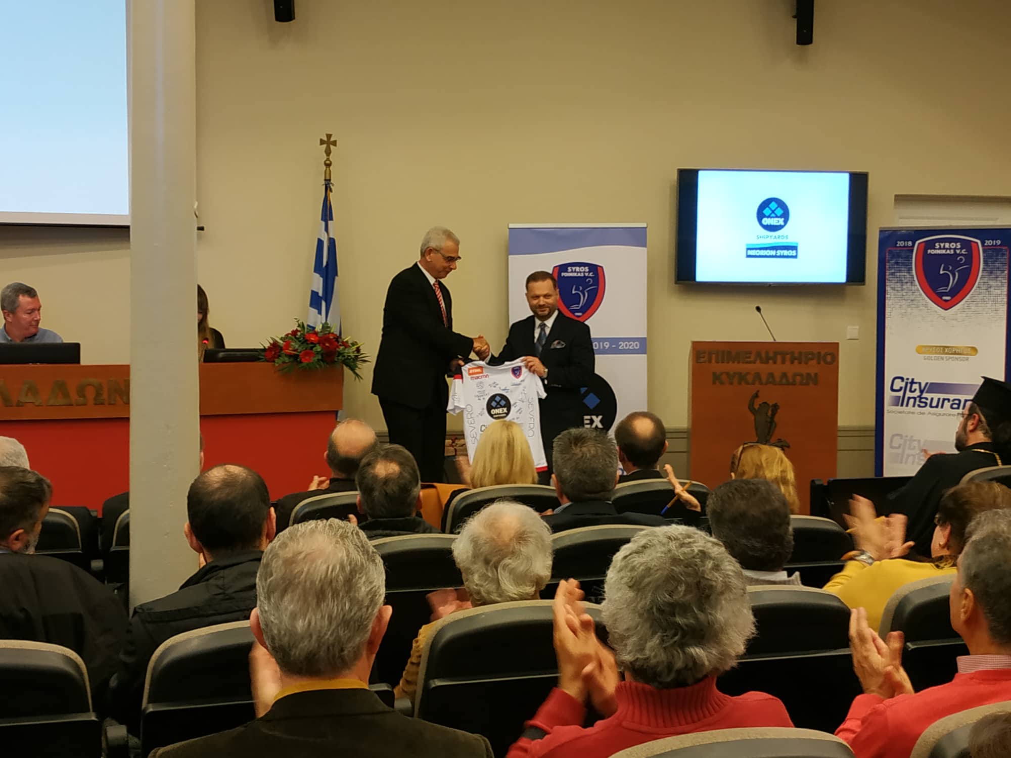 Μία ιδιαίτερη εκδήλωση, καθώς κατά τη διάρκεια αυτής έγινε η επίσημη παρουσίαση της μετονομασίας της ομάδας του Φοίνικα Σύρου – ONEX.  Μία συνεργασία που δίνει μεγάλη δυναμική στην ομάδα, αλλά και ταυτόχρονα βάζει τις βάσεις για ένα σταθερό και υγείες μέλλον. Η ONEX Νεώριον Σύρου στάθηκε δίπλα στον Φοίνικας Σύρου – ONEX στην πιο κρίσιμη ίσως στιγμή της ιστορίας του. Το καλοκαίρι το «Πειρατικό» έφτασε πολύ κοντά ακόμη και στην διάλυση, αφού τα χρέη «έπνιγαν» την ομάδα και κανείς δεν μπορούσε να εγγυηθεί για το μέλλον της. Μάλιστα χρειάστηκαν πολλές προσπάθειες και συνεχείς συναντήσεις, ώστε ο Φοίνικας Σύρου – ONEX να ξεπεράσει τα εμπόδια και σήμερα να είναι όχι μόνο εδώ, αλλά να φωνάζει… παρών έχοντας ταυτόχρονα υψηλούς στόχους. Η ONEX έθεσε μοναδική προϋπόθεση, το νησί, οι φορείς, οι επαγγελματίες και ο απλός κόσμος να σταθεί στο πλευρό του Φοίνικα, ώστε όλοι μαζί να καταφέρουν να δημιουργήσουν ένα ισχυρό σύνολο, το οποίο θα μπορεί να ανταγωνιστεί τις παραδοσιακές μεγάλες ομάδες. Κάτι το οποίο έγινε και όλοι μαζί προχωρούν για ένα καλύτερο μέλλον, έχοντας βάλει ταυτόχρονα ισχυρές βάσεις.