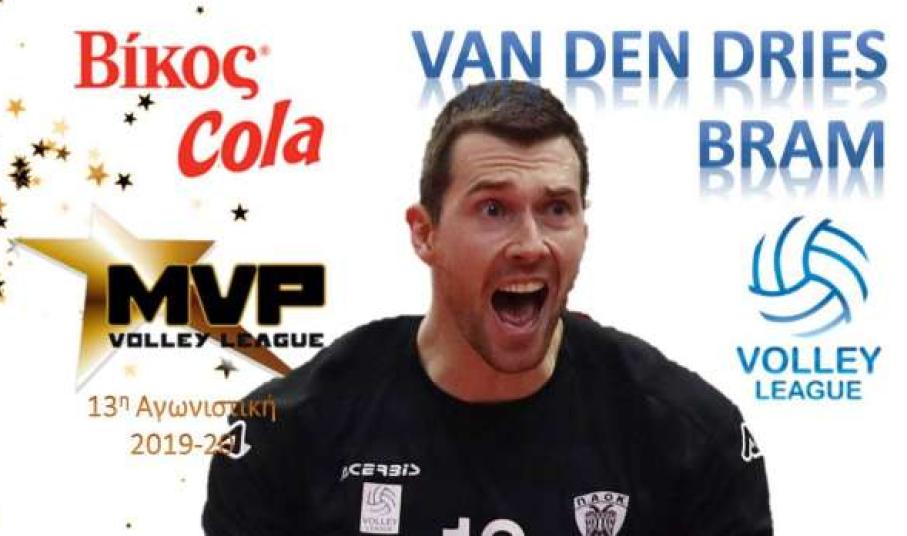 Ο Βέλγος διαγώνιος του Π.Α.Ο.Κ. Mπραμ Βαν ντε Ντρις αναδείχτηκε MVP Βίκος Cola της 13ης αγωνιστικής του πρωταθλήματος Volley League 2019-20.