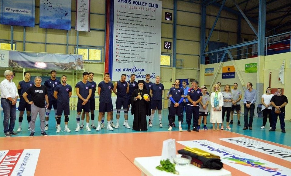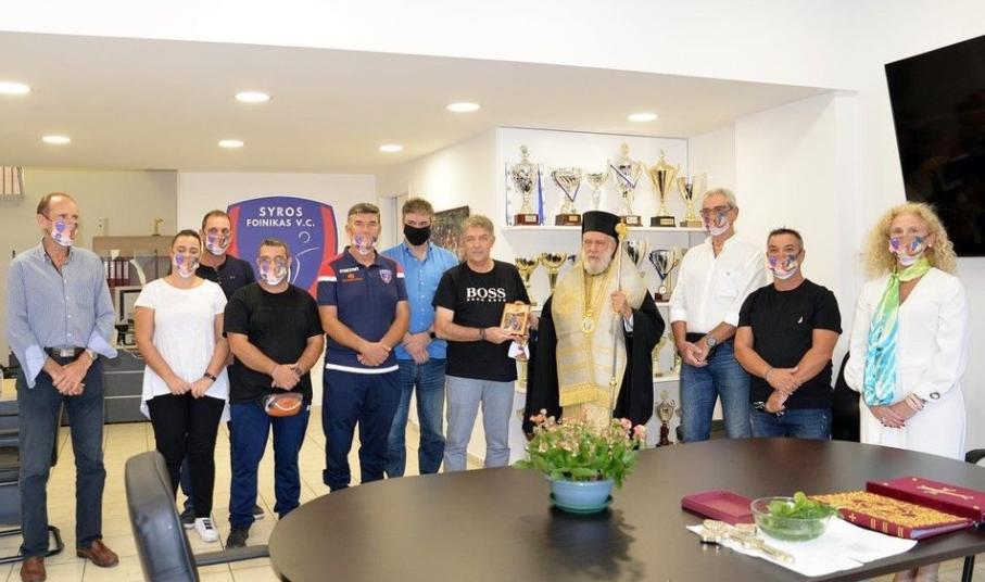 Αμέσως μετά, ο Σεβασμιότατος πήγε και στο κλειστό Δ. Βικέλας (στην προπόνηση της ομάδας), όπου δώρισε στους αθλητές ένα ιερό κομποσκοίνι.
