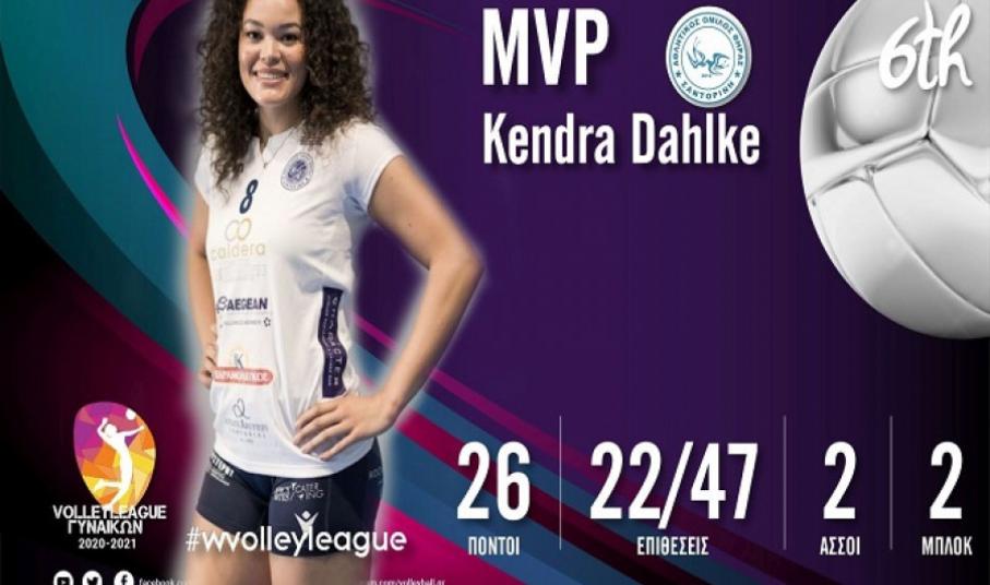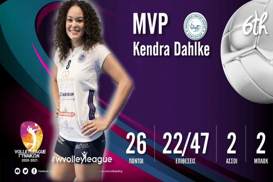 Η Κέντρα Ντάλκε του Α.Ο. Θήρας αναδείχθηκε καλύτερη αθλήτρια της 6ης αγωνιστικής. Η Αμερικανίδα ακραία έδωσε τον καλύτερό της εαυτό και βοήθησε τα μέγιστα στο ματς με τον Άρη, όπου ο Α.Ο. Θήρας επικράτησε με 2-3 σετ στη Θεσσαλονίκη. Να σημειώσουμε εδώ πως η ομάδα της Σαντορίνης διατηρήθηκε στην πρώτη θέση του Α’ Ομίλου του πρωταθλήματος της Volley league γυναικών.