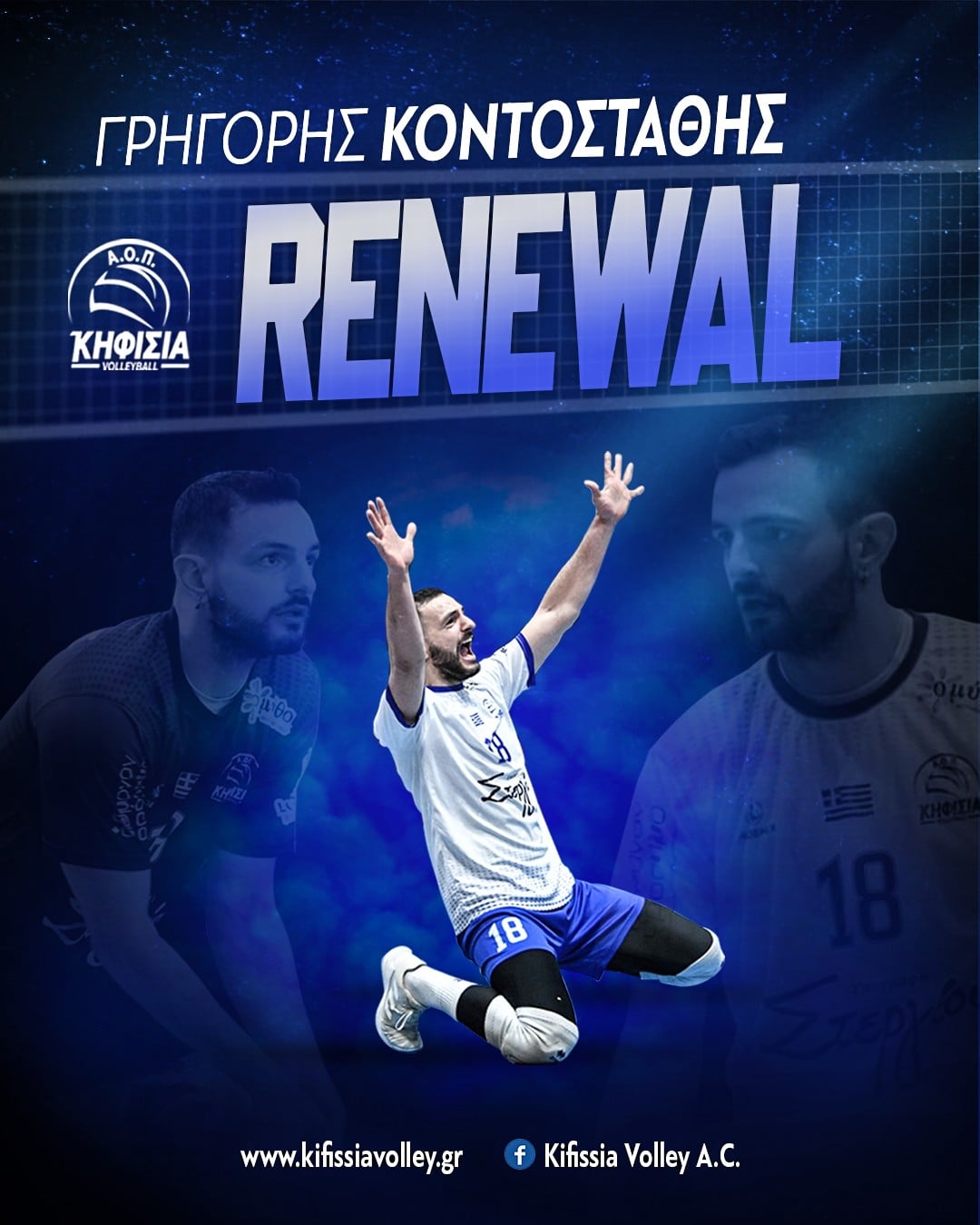 "Ο Αθλητικός Όμιλος Πετοσφαίρισης Κηφισιάς ανακοινώνει την ανανέωση της συνεργασίας του με τον Γρηγόρη Κοντοστάθη για την αγωνιστική περίοδο 2021-22.