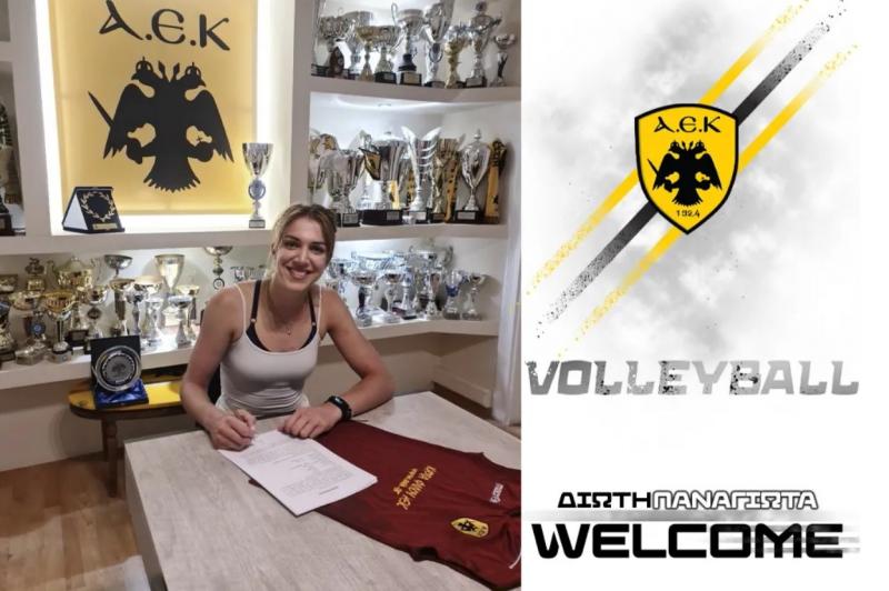 "Η ΑΕΚ βρίσκεται στην ευχάριστη θέση να ανακοινώσει την έναρξη της συνεργασίας της με την Παναγιώτα Διώτη. Η 28χρονη (13/11/1992) ακραία, ύψους 1,86 μ., υπέγραψε μονοετές συμβόλαιο και εντάσσεται στο δυναμικό της γυναικείας ομάδας βόλεϊ του Συλλόγου.