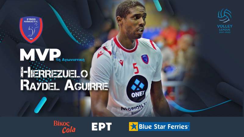 Ο Kουβανός πασαδόρος του Α.Ο.Φοίνικα ΟΝΕΧ Ιερεζουέλο Ρέιντελ Αγκίρε (Hierrezuelo Raydel Aguirre) αναδείχτηκε MVP Βίκος Cola στην 1η αγωνιστική της Α΄ φάσης του πρωταθλήματος Volley League 2021-22.