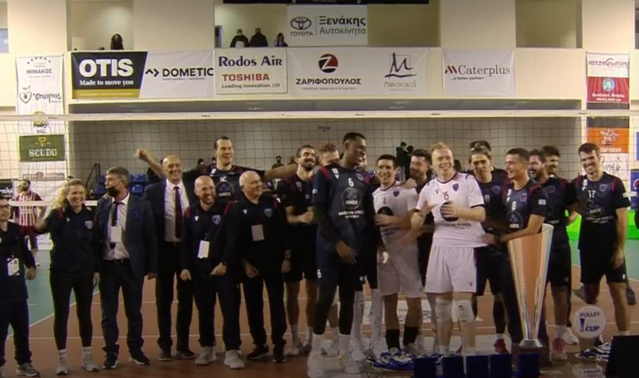 Όσο ο χρόνος περνούσε ο Φοίνικας παίζοντας με καρδιά πάνω από όλα, αφού οι παίκτες δεν άφησαν καμία φάση χωρίς να την διεκδικήσουν, πήρε το πρώτο σετ και ταυτόχρονα ανέβασε στα ύψη την ψυχολογία του. Το δεύτερο σετ όπως και το πρώτο ήταν μεγάλο ντέρμπι, όμως και πάλι η ομάδα της Σύρου είχε τις λύσεις και κατέκτησε το σετ κάνοντας το 0-2, έπειτα το 25-27. Το τρίτο και τελευταίο σετ, ήταν το σετ στο οποίο έσπασαν καρδιές, αφού ο Φοίνικας έφτασε τόσο κοντά όσο και πολύ μακριά από την κατάκτηση του πολύτιμου τρόπαιου. Τελικά ο Τζούριτς στο φινάλε ήταν αυτός που κράτησε τον Φοίνικα με τους πολύτιμους πόντους και τα μπλοκ που έκανε. Ο Φοίνικας Σύρου ONEX κατάκτησε το μεγαλύτερο τρόπαιο στην ιστορία του, μετά τις δύο κατακτήσεις του League Cup.