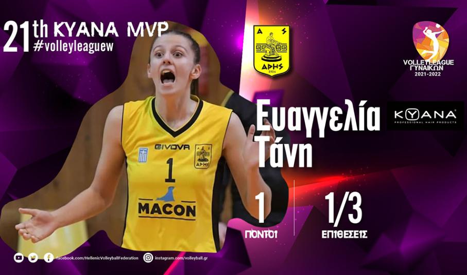 Η Ευαγγελία Τάνη είναι η ΚYANA MVP της 21ης αγωνιστικής του πρωταθλήματος της Volley League Γυναικών.