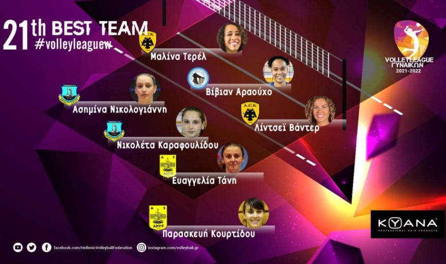Ακραίες: Λίντσεϊ Βάντερ (ΑΕΚ) 19π. (16/29 επ., 3 μπλοκ, 58% υπ. - 15% άριστες), Ασημίνα Νικολογιάννη (Πανναξιακός ΑΟΝ) 10π. (8/13 επ., 1 άσσος, 1 μπλοκ, 55% υπ. - 39% άριστες).