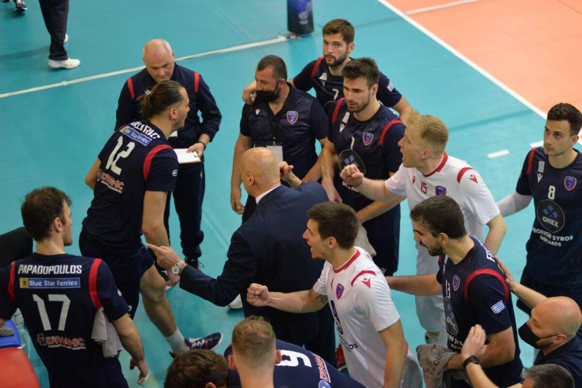 Την επαφή του με την κορυφή έχασε ο Φοίνικας Σύρου ONEX μετά την ήττα του στην Ερμούπολη από τον Ολυμπιακό με 1-3. Το «Πειρατικό» εμφανώς επηρεασμένο από τον χαμένο τελικό του κυπέλλου Ελλάδας, δεν απέδωσε τα αναμενόμενα και δίκαια γνώρισε την ήττα από τον ανώτερο Ολυμπιακό. Από την πλευρά τους οι «Ερυθρόλευκοι» εκμεταλλεύτηκαν την ασταθή απόδοση των Συριανών και με αιχμή του δόρατος την πίεση από το σέρβις έκαναν σχετικά εύκολα το 1-3 και πλέον είναι η μόνη ομάδα που διατηρεί τις ελπίδες της για τον τίτλο.