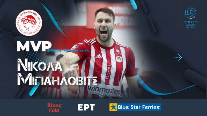 Ο Σέρβος ακραίος του Ολυμπιακού Σ.Φ.Π. Νικολά Μιγιαήλοβιτς αναδείχτηκε MVP Βίκος Cola στην 6η αγωνιστική της B΄ φάσης του πρωταθλήματος Volley League 2021-22: