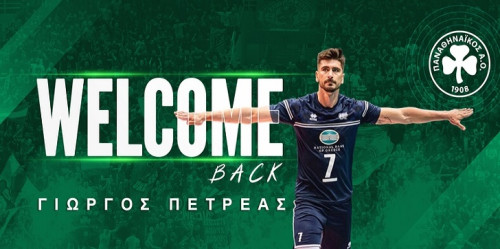 «Ο Παναθηναϊκός Αθλητικός Όμιλος ανακοινώνει την έναρξη της συνεργασίας του με τον κεντρικό Γιώργο Πετρέα για την αγωνιστική σεζόν 2022-2023 για το ανδρικό τμήμα βόλεϊ.Ο έμπειρος κεντρικός (19/11/1986, 2.01) επιστρέφει στο «τριφύλλι» μετά από 12 χρόνια (σεζόν 2010-11) και αναμένεται να ενισχύσει σημαντικά την ομάδα στην επίτευξη των εγχώριων και ευρωπαϊκών στόχων της.Ο διεθνής κεντρικός έχει γράψει τη δική του ιστορία στο φιλέ με σπουδαία καριέρα σε Ελλάδα και Ευρώπη και με πολλές συμμετοχές με την Εθνική ομάδα".