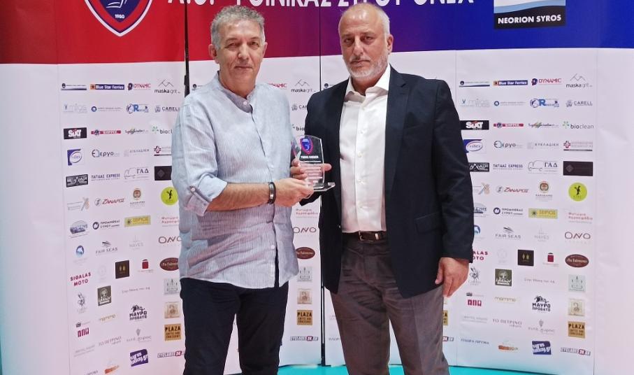 Τέλος, θα ήθελα να ευχηθώ σε όλες τις ομάδες μας καλή επιτυχία στις προσπάθειές τους και στην ομάδα των ανδρών του Φοίνικα Σύρου ONEX να βρίσκεται πάντα ανάμεσα στις κορυφαίες ομάδες και να μας χαρίζει χαρές και συγκινήσεις".