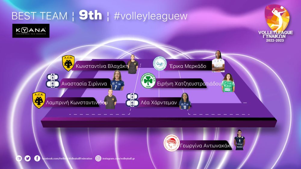 Στην καλύτερη επτάδα της 9ης αγωνιστικής συμπεριλήφθηκε η Έρικα Μερκάδο του Α.Ο. θήρας. Η διαγώνιος της ομάδας της Σαντορίνης σημείωσε συνολικά 19 πόντους έχοντας ταυτόχρονα εξαιρετικά στατιστικά. Να θυμίσουμε πως ο Α.Ο. Θήρας επικράτησε με 3-0 του Άρη και η Μερκάδο είχε 19 πόντους με τα εξής στατιστικά (15/28 επ., 1 άσσος, 3 μπλοκ). Το συγκρότημα του Βάντιμιρ Βάσοβιτς βρίσκεται πλέον μία ανάσα από την τετράδα, καθώς η ανοδική του πορεία συνεχίζεται με εντυπωσιακό τρόπο.
