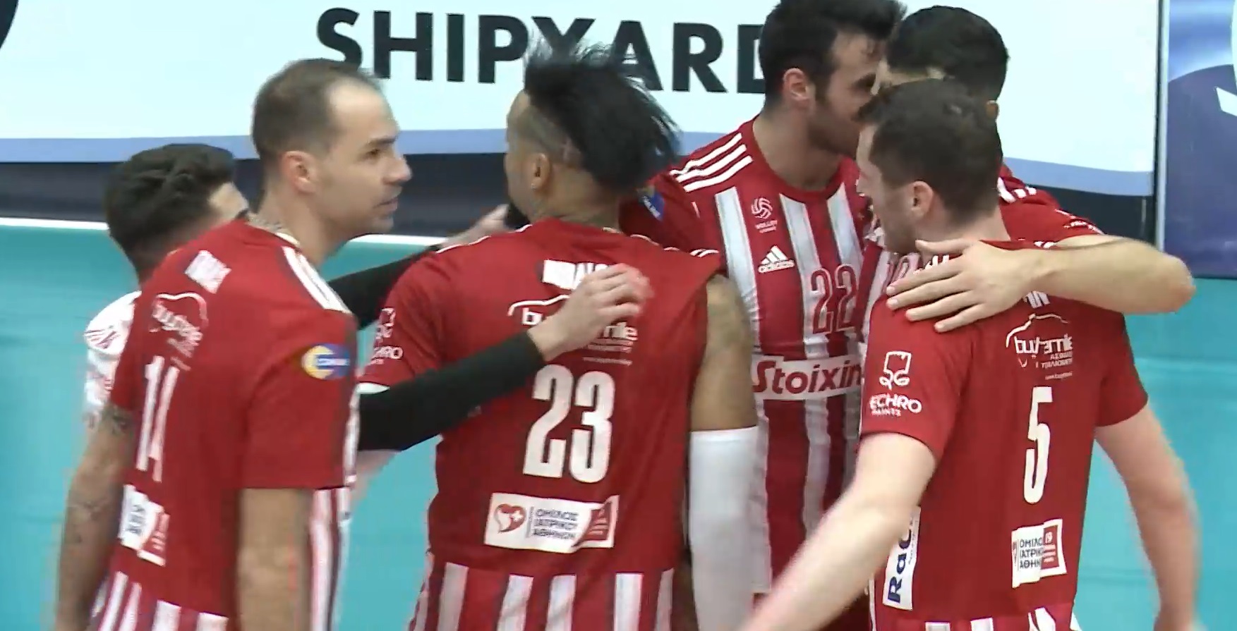 Ολυμπιακός Σ.Φ.Π. (Αλμπέρτο Τζουλιάνι): Παγένκ 12 (7/16 επ., 3 άσσοι, 3 μπλοκ), Στερν 18 (18/34 επ.), Κουμεντάκης 18 (16/28 επ., 2 μπλοκ, 61% υπ. – 50% άριστες), Τράβιτσα 4 (2/3 επ.,1 άσσος, 1 μπλοκ), Λινάρδος 7 (2/4 επ., 5 μπλοκ), Ιντάλγκο 19 (15/29 επ., 3 άσσοι, 1 μπλοκ, 60% υπ. – 40% άριστες) / Τζιάβρας (λ, 69% υπ. – 48% άριστες), Παπαγγελόπουλος, Χανδρινός, Ζουπάνι, Δαλακούρας.