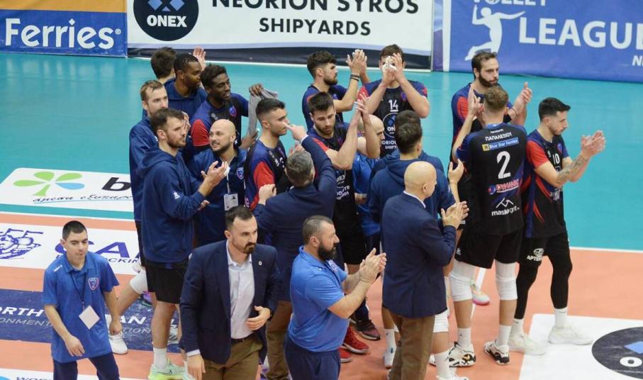 Πλέον το συγκρότημα της Σύρου χρειάζεται μόλις δύο σετ για να προκριθεί στον τελικό. Ο επαναληπτικός θα πραγματοποιηθεί το ερχόμενο Σάββατο στο Ρέντη.