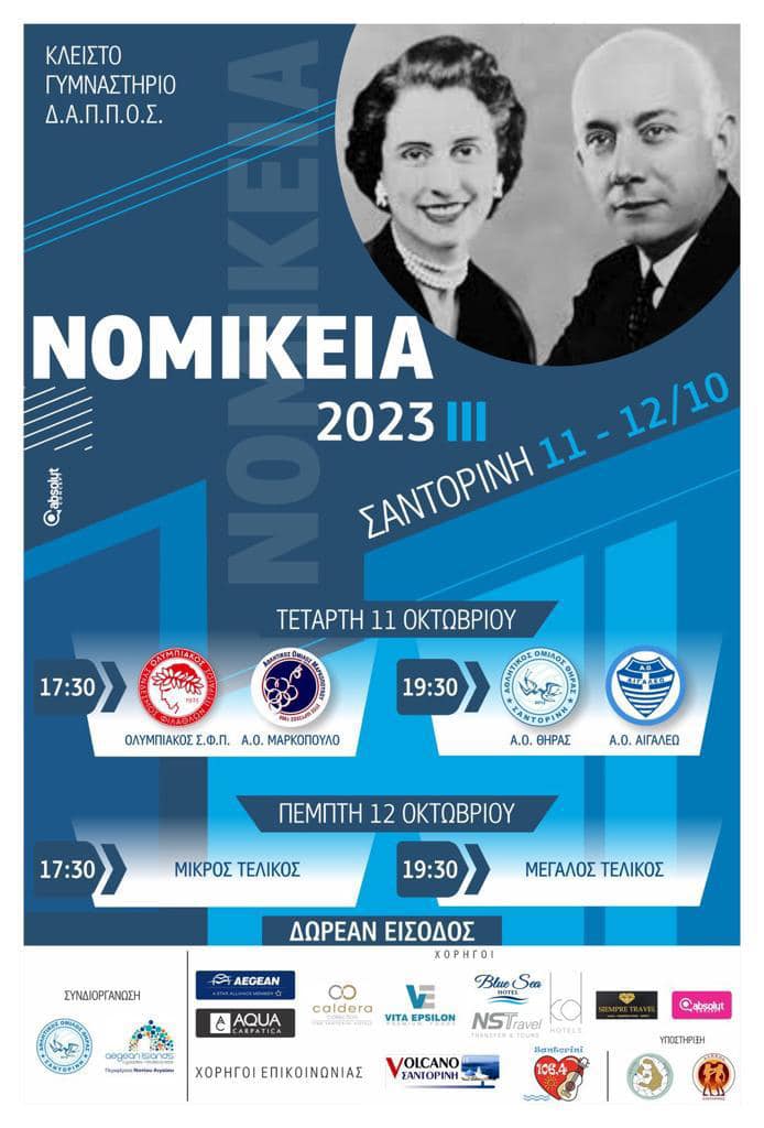 Την Τετάρτη 11 Οκτωβρίου θα αρχίσει το 10ο τουρνουά «Νομίκεια 2023» στο νησί της Σαντορίνης. Το παιχνίδι που θα ανοίξει την αυλαία του τουρνουά είναι αυτό που θα ξεκινήσει την Τετάρτη στις 17:30 μεταξύ του Ολυμπιακού και του Μαρκόπουλου. Ο οικοδεσπότης Α.Ο. Θήρας θα φιλοξενήσει στο δεύτερο παιχνίδι της ημέρας (19:30) το Α.Ο. Αιγάλεω.