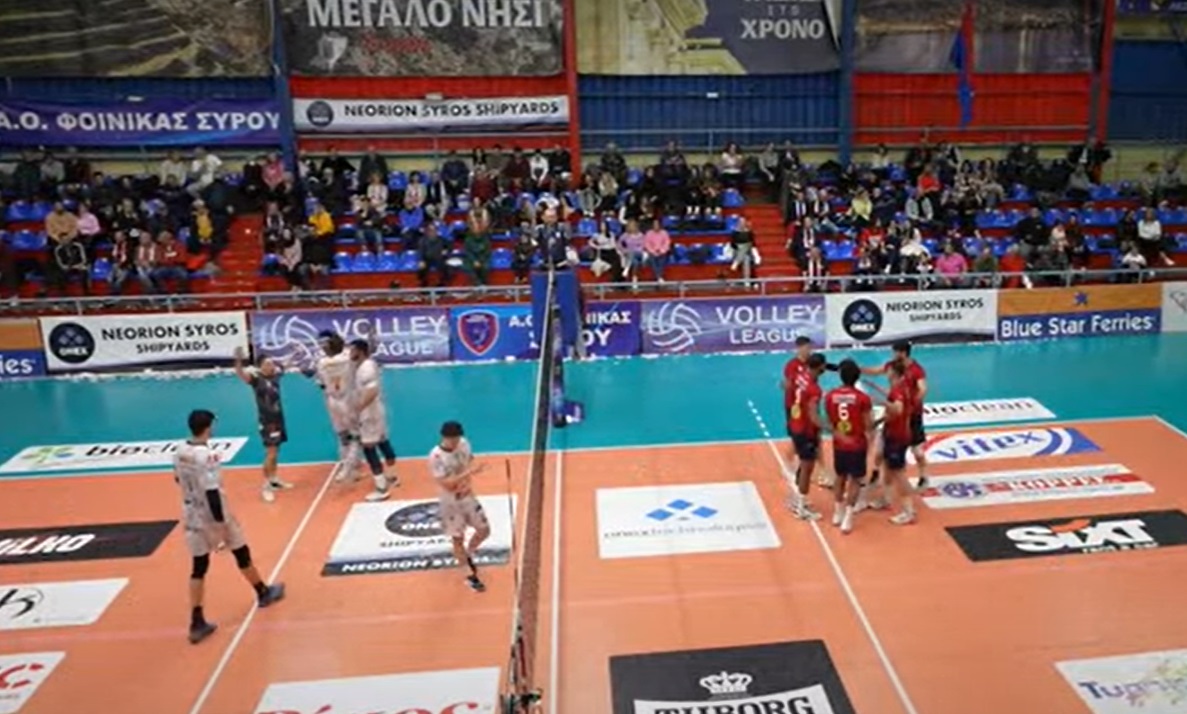 Μουδιασμένο το ξεκίνημα για την ομάδα της Σύρου, καθώς οι φιλοξενούμενοι μπήκαν δυνατά και προηγήθηκαν με 0-3. Το «πειρατικό» αντέδρασε άμεσα και ισοφάρισε σε 3-3. Ο Άθλος όμως είχε τις απαντήσεις καθώς έδειξε να ελέγχει τον ρυθμό και να παίρνει ξανά το προβάδισμα. Μάλιστα μετά το 10-13, άνοιξε την… ψαλίδα στο σκορ και ξέφυγε ακόμη και με επτά πόντους, κάνοντας το 12-19. Κακή επίθεση από τον Κουτσομύτη και ο Άθλος έκανε το 13-20. Ο Πετσιάς με μπλοκ σταμάτησε τον Καλαμπαλή και μείωσε σε 14-20, όμως στη συνέχεια ο Μπράιαν δεν κατάφερε από τη γραμμή του σέρβις να περάσει τη μπάλα από το φιλέ 14-21. Εκτός αγωνιστικού χώρου πέρασε η μπάλα στην επίθεση του Άθλου και το «πειρατικό» με ένα σερί 3-0 μείωσε σε 19-23. Ο Μπράιν έχει βγάλει στο κομμάτι του σετ αντίδραση, αφού μείωσε ακόμη περισσότερο κι έκανε το 20-23. Λάθος επίθεση του Μπράιν και το σκορ έγινε 20-25 και οι φιλοξενούμενοι άνοιξαν το σκορ στη Σύρο.