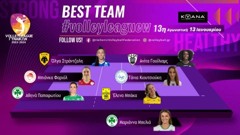 Στην κορυφαία επτάδα της 13ης αγωνιστικής συμπεριελήφθη η Ελληνίδα κεντρικός του Α.Ο. Θήρας, Τάνια Κιουτσιούκη. Η αθλήτρια της ομάδας από τη Σαντορίνη με την απόδοσή της βοήθησε τα μέγιστα τον Α.Ο. Θήρας να φτάσει στη νίκη με 3-0 επί της Ακαδημίας Πρωταθλητών Πεύκων. Η Κιουτσιούκη κατάφερε να πάρει 12 πόντους με 3 στις 6 επιθέσεις, 3 άσσους και 3 μπλοκ.