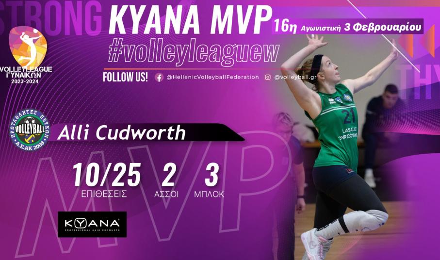 Η Άλι Κάντγουορθ των Ακαδημιών Πρωταθλητών Πεύκων είναι η KYANA MVP της 16ης αγωνιστικής του πρωταθλήματος της Volley League Γυναικών.