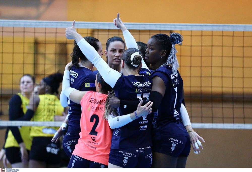Α.Ο. ΘΗΡΑΣ (Ματέο Φρέσκι): Φερνάντες 6 (3/9 επ., 1 άσσος, 2 μπλοκ), Σαβάρ 24 (20/41 επ., 1 άσσος, 3 μπλοκ, 26% υπ. - 3% άριστες), Μερκα΄δο 19 (14/33 επ., 4 άσσοι, 1 μπλοκ), Χριστοδούλου 7 (5/7 επ., 2 άσσοι), Φίγιοκ 12 (9/32 επ., 3 πλοκ, 67% υπ. - 33% άριστες), Κιουτσιούκη 9 (6/12 επ., 3 μπλοκ) / Γεωργιάδου (λ, 63% υπ. - 26% άριστες), Καραμπάση (λ, 56% υπ. - 33% άριστες), Αδαμοπούλου, Τσοχατζή, Χαντζή.