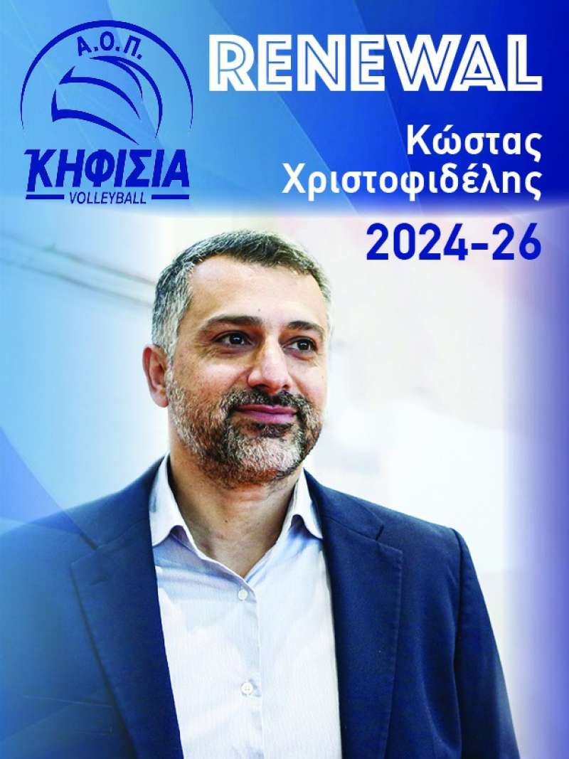 Ο Αθλητικός Όμιλος Πετοσφαίρισης Κηφισιάς ανακοινώνει την ανανέωση της συνεργασίας του με τον προπονητή Κώστα Χριστοφιδέλη για 2 ακόμα χρόνια. Έτσι θα επιτυχημένος τεχνικός θα βρίσκεται στον πάγκο των «κυανόλευκων» μέχρι και το 2026, με τη διοίκηση της ομάδας να αναγνωρίζει το έργο του.