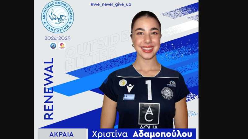 «Η διοίκηση του Α.Ο. Θήρας είναι στην ευχάριστη θέση να ανακοινώσει τη συνέχιση της συνεργασίας του με την αθλήτρια Χριστίνα Αδαμοπούλου ενόψει της νέας αγωνιστικής σεζόν της Volleyleague γυναικών 2024-2025.