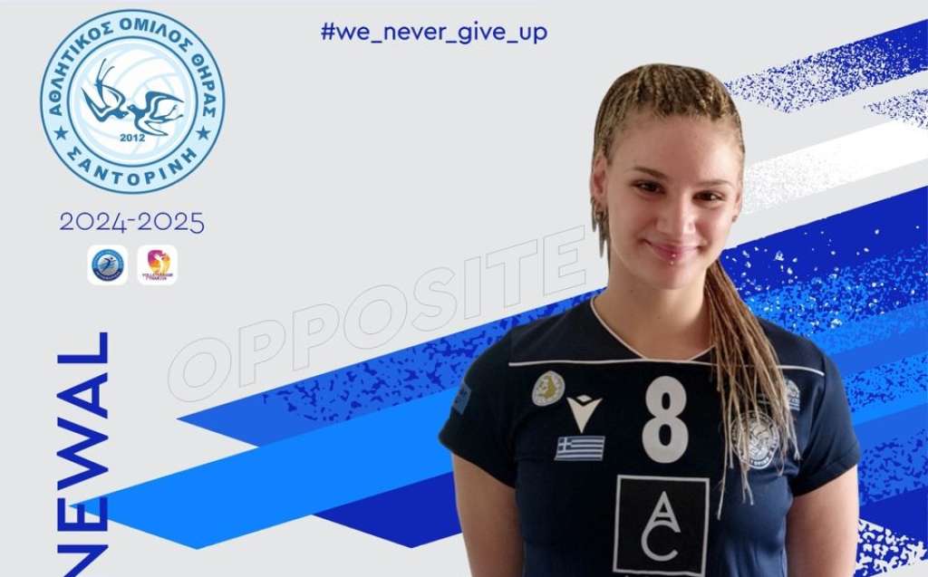 Η διοίκηση του Α.Ο. Θήρας είναι στην ευχάριστη θέση να ανακοινώσει την συνέχιση της συνεργασίας του με την αθλήτρια Ειρήνη Αγγελοπούλου ενόψει της νέας αγωνιστικής σεζόν της Volleyleague γυναικών 2024-2025.