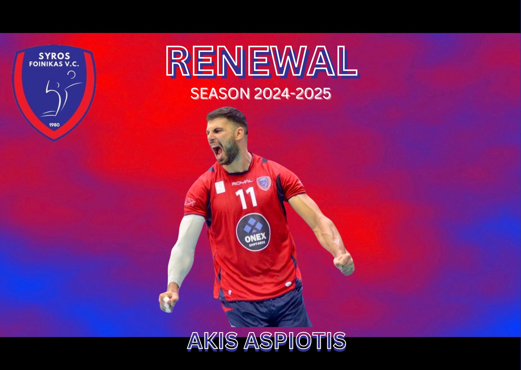 Παίκτης του Φοίνικα Σύρου θα παραμείνει και τη νέα αγωνιστική περίοδο ο Άκης Ασπιώτης. Οι δύο πλευρές έμειναν ευχαριστημένοι με την έως τώρα συνεργασία τους και αμέσως μετά τη λήξη των αγωνιστικών υποχρεώσεων της ομάδας, άρχισαν και οι πρώτες συζητήσεις.