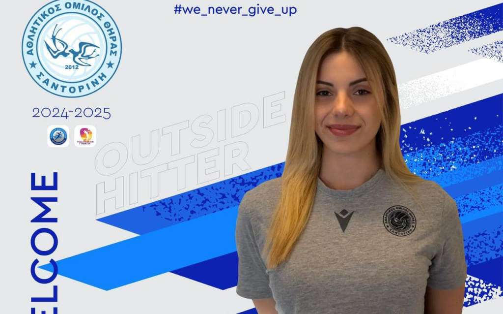 “Είμαι πολύ χαρούμενη που θα ενταχθώ στο δυναμικό του ΑΟ Θήρας και θα έχω την ευκαιρία να συνεργαστώ με προπονητές και αθλήτριες υψηλού επιπέδου. Ευχαριστώ πολύ το προπονητικό τιμ και την διοίκηση για την εμπιστοσύνη που δείχνουν στο πρόσωπό μου και δεσμεύομαι ότι θα δώσω τον καλύτερο εαυτό μου ώστε να βοηθήσω την ομάδα να πετύχει τους στόχους της. Εύχομαι να έχουμε μια επιτυχημένη αγωνιστική χρόνια με υγεία και χωρίς τραυματισμούς!” δήλωσε η αθλήτρια με την υπογραφή της συμφωνίας της με τον Α.Ο. Θήρας.