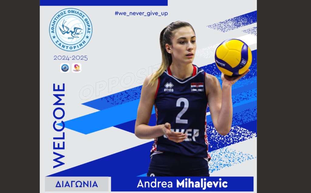 Αθλήτρια του Α.Ο. Θήρας είναι και επίσημα η Andrea Mihaljevic, με τη διοίκηση, μέσω ανακοίνωσης, να κάνει γνωστή τη μεταξύ τους συμφωνία. Η γεννημένη στις 21 Φεβρουαρίου του 2003 στην Κροατία, έχει ύψος 1,84μ. και αγωνίζεται ως διαγώνια.