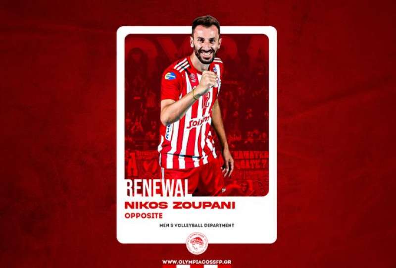 Ο Ολυμπιακός Σ.Φ.Π. ανακοινώνει την ανανέωση της συνεργασίας του με τον Νίκο Ζουπάνη. Ο διεθνής διαγώνιος υπέγραψε το νέο του συμβόλαιο και παραμένει στο ρόστερ της ομάδας βόλεϊ Ανδρών του συλλόγου." Ο Νίκος Ζουπάνη που κάνει αποθεραπεία δήλωσε στην επίσημη ιστοσελίδα του Ολυμπιακού: