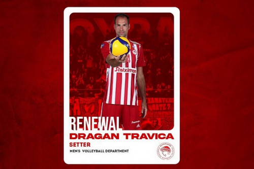 "Ο Ολυμπιακός Σ.Φ.Π. ανακοινώνει την ανανέωση της συνεργασίας του με τον Ντράγκαν Τράβιτσα. Ο αρχηγός και Ιταλός πασαδόρος υπέγραψε το νέο του συμβόλαιο και παραμένει στο ρόστερ της ομάδας βόλεϊ Ανδρών του συλλόγου.