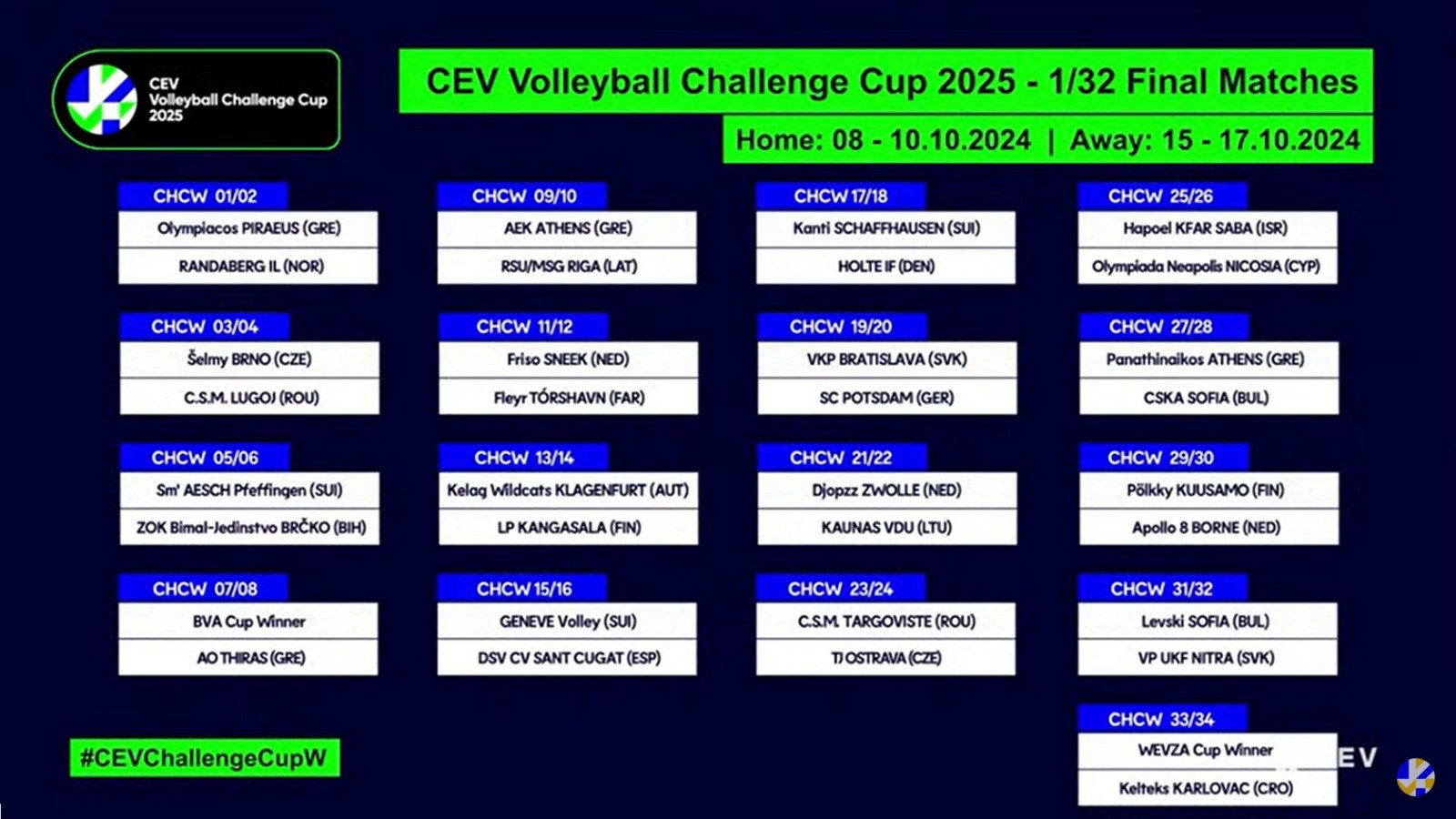 Αυτό προέκυψε από την κλήρωση που πραγματοποιήθηκε στα γραφεία της CEV στο Λουξεμβούργο.