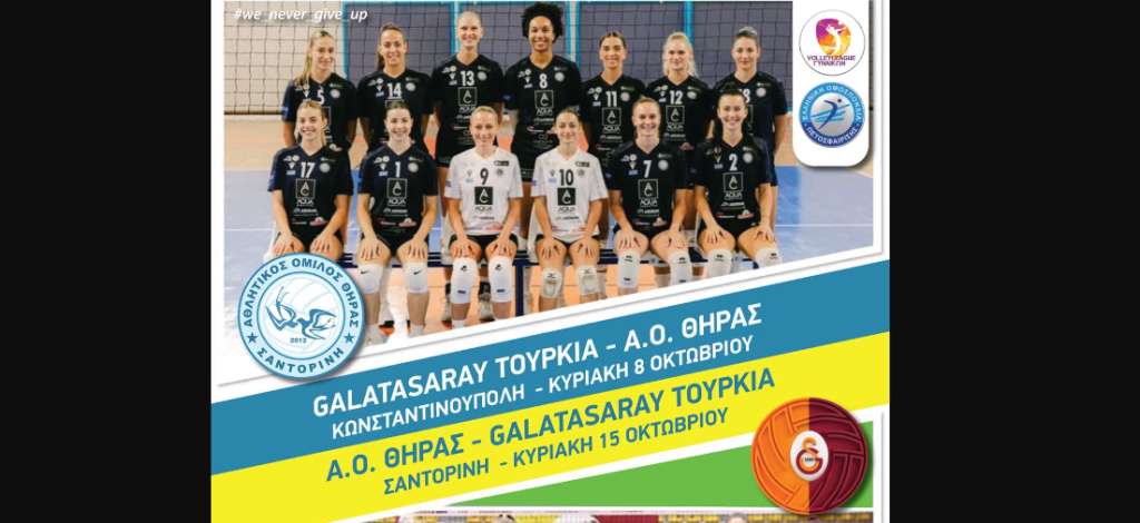 Δύο πολύ δυνατά παιχνίδια έχει μπροστά της η γυναικεία ομάδα του Α.Ο. Θήρας, η οποία ετοιμάζεται πυρετωδώς για τα ευρωπαϊκά παιχνίδια του CEV Challenge Cup. Η ομάδα της Σαντορίνης θα βρεθεί απέναντι στην ιστορική τούρκικη ομάδα, την Γαλατασαράι. Δύο παιχνίδια με πολύ μεγάλο ενδιαφέρον για τους φιλάθλους και των δύο χωρών. Η πρώτη αναμέτρηση θα πραγματοποιηθεί στην Κωνσταντινούπολη στις 8 Οκτωβρίου και ο επαναληπτικός είναι μία εβδομάδα αργότερα, δηλαδή στη Σαντορίνη στις 15 του μήνα.