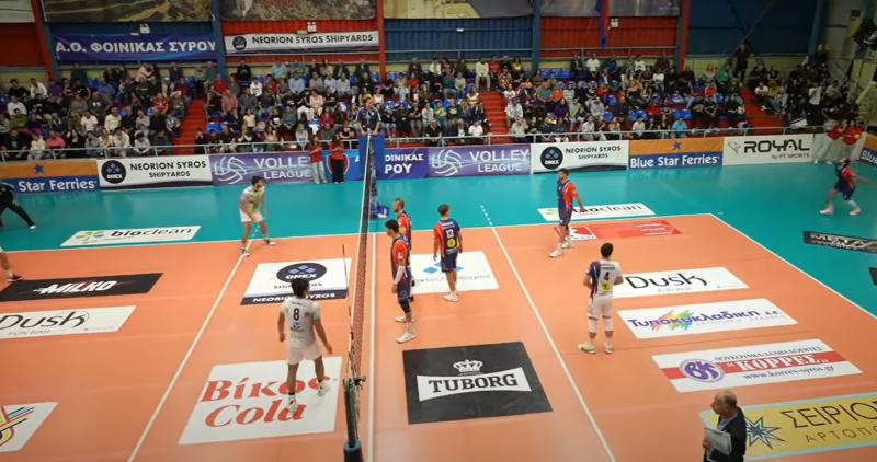 Α.Ο. ΦΟΙΝΙΚΑΣ ΣΥΡΟΥ (Νίκος Ζαλμάς): Βαϊόπουλος 10 (6/11 επ., 1 άσσος, 3 μπλοκ), Καπετανίδης 18 (15/31 επ., 2 άσσοι, 1 μπλοκ, 44% υπ. - 15% άριστες), Ρικάρντο 16 (13/24 επ., 1 άσσος, 2 μπλοκ, 40% υπ. - 23% άριστες), Ασπιώτης 20 (18/31 επ., 1 άσσος, 1 μπλοκ), Σκρούντερς 4 (2/2 επ., 2 μπλοκ), Μορέιρα 11 (7/11 επ., 3 άσσοι, 1 μπλοκ) / Μπουράκης (λ, 55% υπ. - 24% άριστες), Αρόνγκα 1 (1/2 επ.), Ρουσόπουλος.