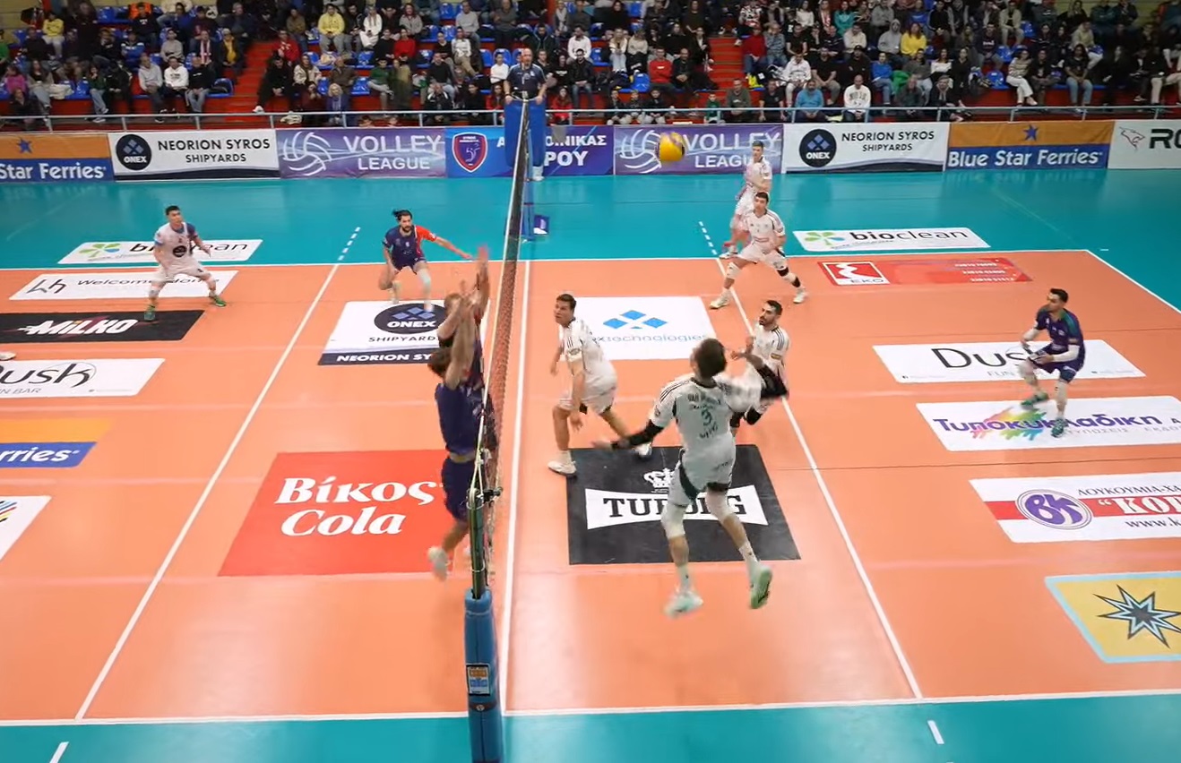 Οι φιλοξενούμενοι μπήκαν καλύτερα, καθώς προηγήθηκαν με 5-8, όμως οι Συριανοί αντέδρασαν και μείωσαν σε 7-8, μετά τη λάθος επίθεση του Παναθηναϊκού. O Νίλσεν με άσσο έφερε τη διαφορά και πάλι στο +3 (8-11) και ο Θάνος Τερζής κάλεσε τάιμ άουτ. Με μονό μπλοκ του Πρωτοψάλτη οι φιλοξενούμενοι έκαναν το 9-13.