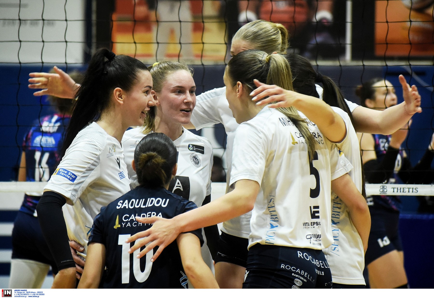 Αν και έχασε το πρώτο σετ, ο Α.Ο. Θήρας πήρε το διπλό στην έδρα της Θέτιδας με 1-3 σετ και εξασφάλισε με 2-0 νίκες τηn πρόκριση για τα ημιτελικά του πρωταθλήματος της Volley League γυναικών.