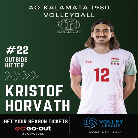 Παίκτης της Καλαμάτας είναι και επίσημα ο 26χρονος Ούγγρος ακραίος, Κριστόφ Χόρβαθ. Η ομάδα της Μεσσηνίας άρχισε τον μεταγραφικό της σχεδιασμό ενόψει της νέας αγωνιστικής περιόδου.