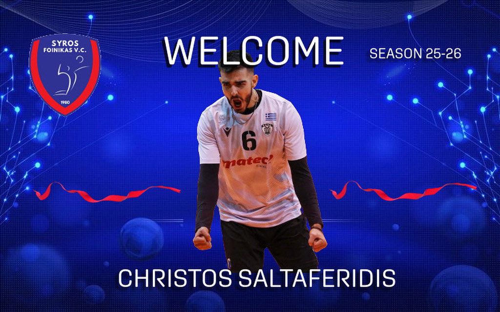 Ο Φοίνικας Σύρου, με ανακοίνωσή του, έκανε γνωστή τη  συμφωνία του με τον Χρήστο Σαλταφερίδη. Το νέο μεταγραφικό απόκτημα της ομάδας της Σύρου αγωνίζεται ως ακραίος και έχει αρκετά μεγάλη εμπειρία από το πρωτάθλημα της Volley League. Αυτό γιατί έχει περάσει από ομάδες όπως ο Άρης Θεσσαλονίκης, ο ΟΦΗ, ο ΟΠΑΘ Περσέας και ο ΠΑΟΚ.