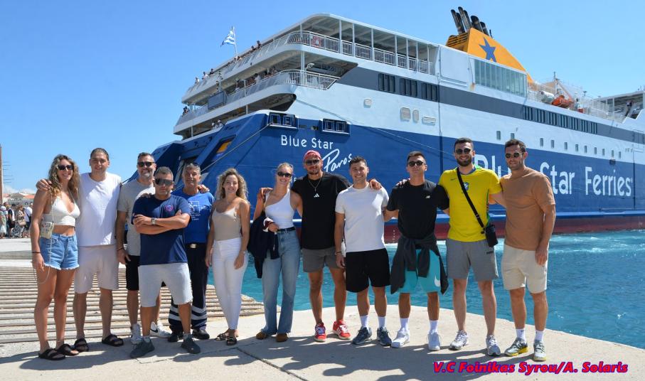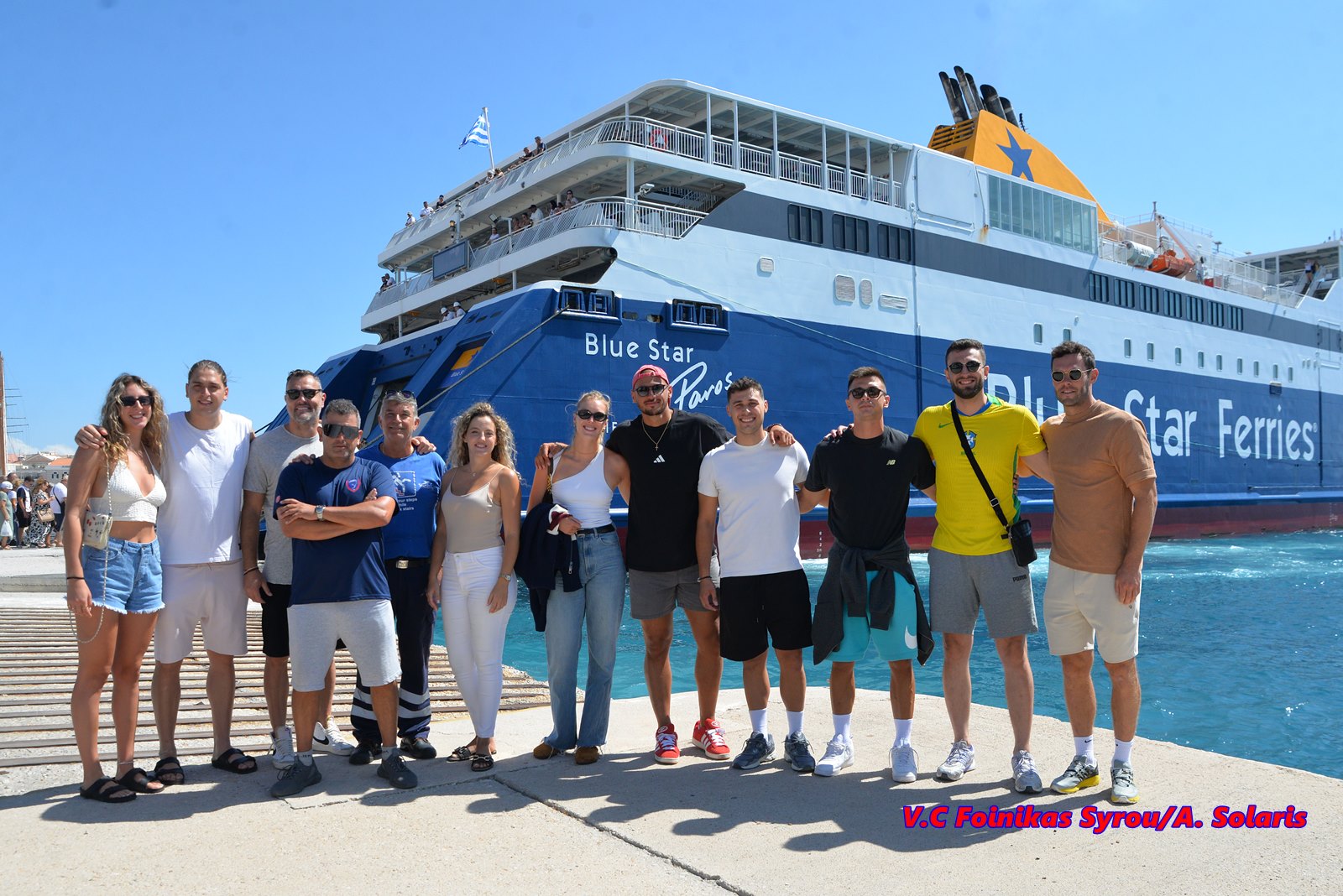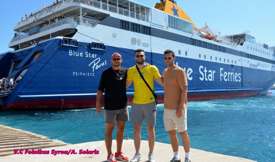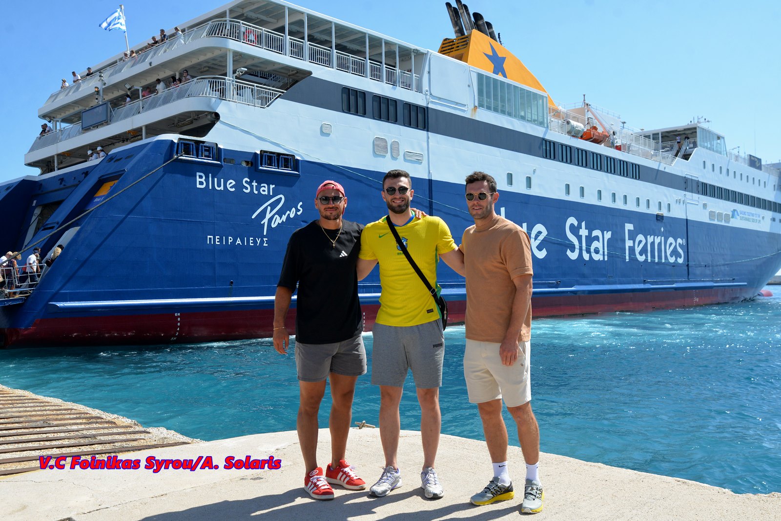 Ο κ. Μάνος Σκοπελίτης, αντιπρόεδρος του ΤΑΑ, μαζί με τον τιμ μάνατζερ, Μανώλη Βαμβακούση και την υπεύθυνη γραμματείας, Μύριαμ Μαραγκού υποδέχθηκαν στο λιμάνι της Ερμούπολης τους Άξελ Τρούχτσεφ, Ρενάν Μικελούτσι, Τόμας Νεβό, Αντώνη Μπουράκη και Φάνη Ρουσόπουλο. Να σημειώσουμε εδώ πως στο λιμάνι βρέθηκε για να καλωσορίσει τους παίκτες του και ο Θάνος Τερζή, μαζί με τον Νίκο Μήλη.