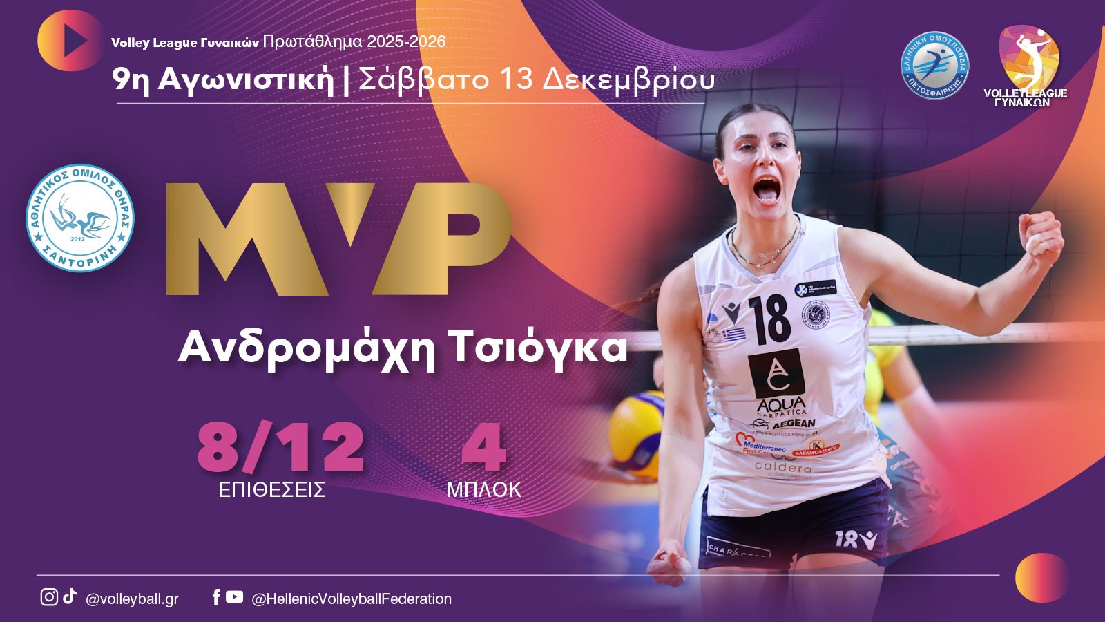 VOLLEY LEAGUE ΓΥΝΑΙΚΩΝ MVP 2025-2026
