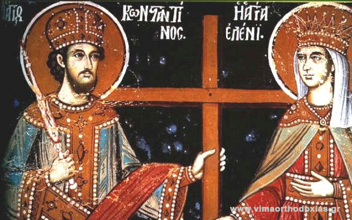 Είναι τα δύο ονόματα των Αγίων που εορτάζουν την 21η Μαΐου. Η Ελένη έγινε γνωστή ως βασίλισσα και ισαπόστολος. Ήταν η μητέρα του Μεγάλου Κωνσταντίνου, του βασιλιά του Βυζαντίου. Η Ελένη ήταν Ελληνίδα στην καταγωγή, γεννήθηκε το 247 στο Δρέπανο της Βιθυνίας, πόλη της Μικράς Ασίας όπου κατοικούσαν πολλοί Έλληνες, που πήγαν να εγκατασταθούν εκεί από τη Θράκη. Αυτή τη μικρή πόλη Δρέπανο, ο Μέγας Κωνσταντίνος τη μετονόμασε αργότερα “Ελενόπολιν” προς τιμήν της μητέρας του Ελένης.